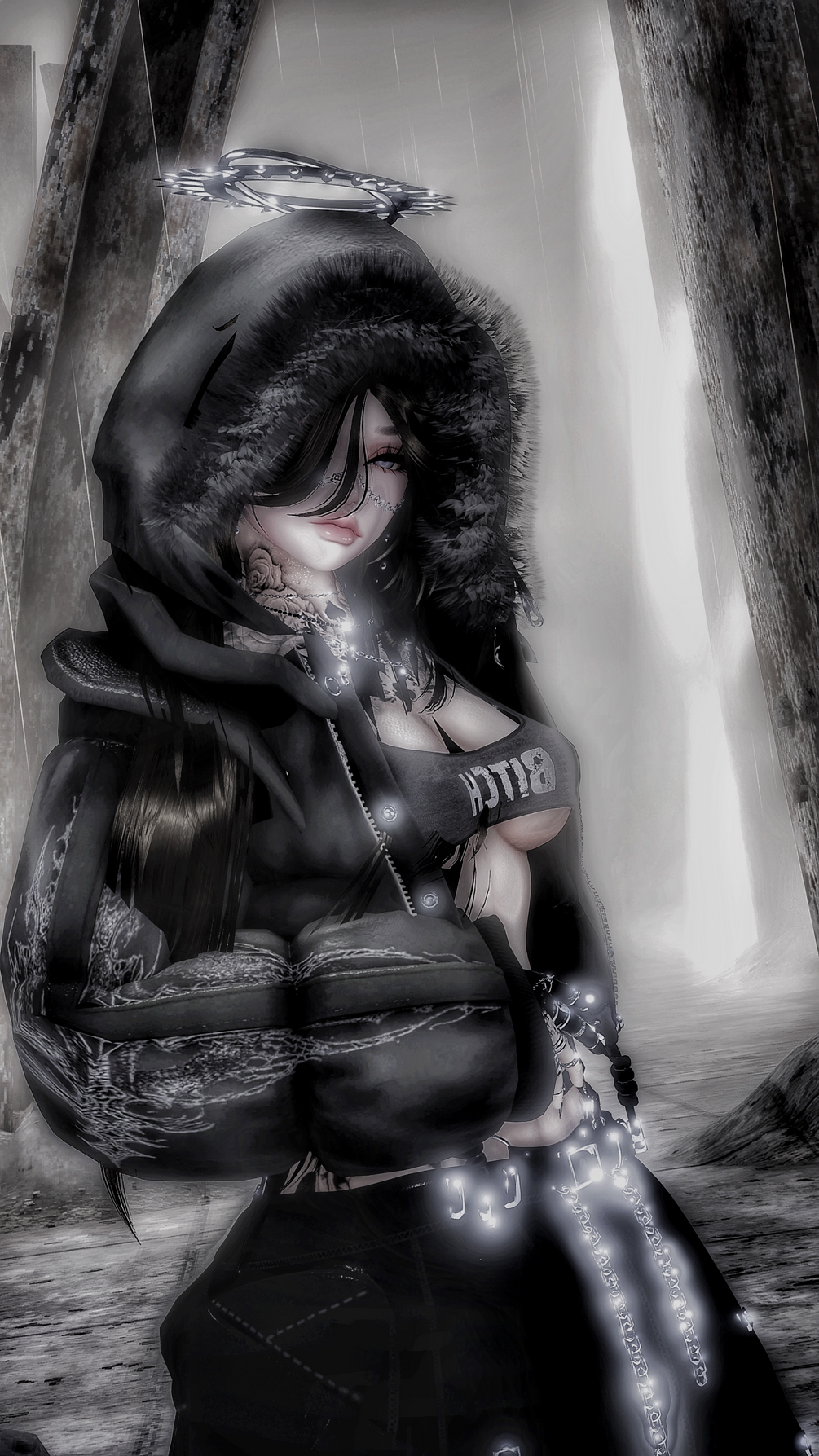 Acc: Chains horns Knife Holster, Rings, Arm Chains, Harness, Back Bling Set, Gun Prop , Sex Shades Glasses Ciggy, Face Chain Face Mask Hat ,Gloves